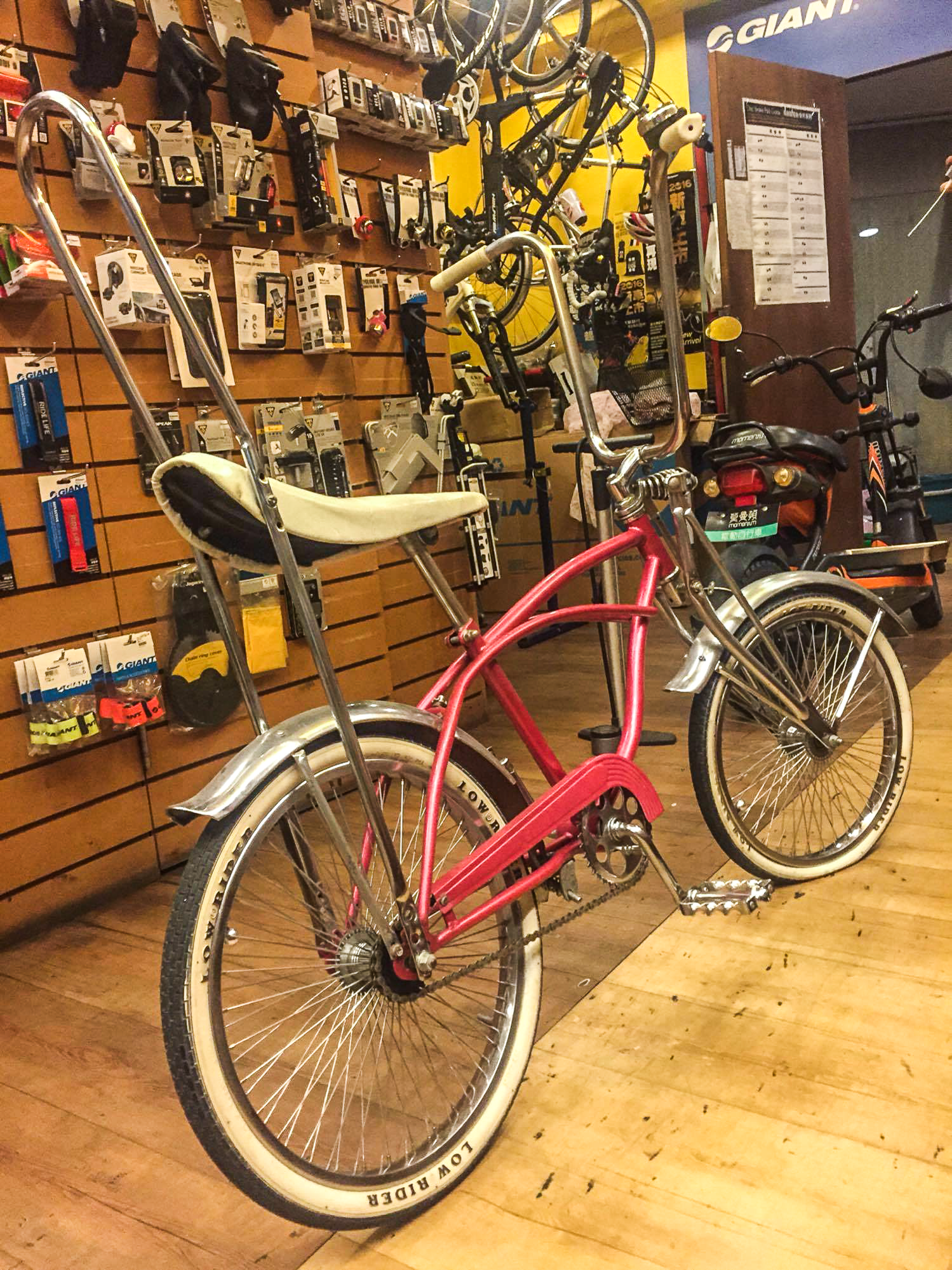 這台帥氣的LOWRIDER BIKE 是來自台南知名的DJ Dr. K 老前輩收藏的,阿逵老師說身為嘻哈人家裡一定要有一台的